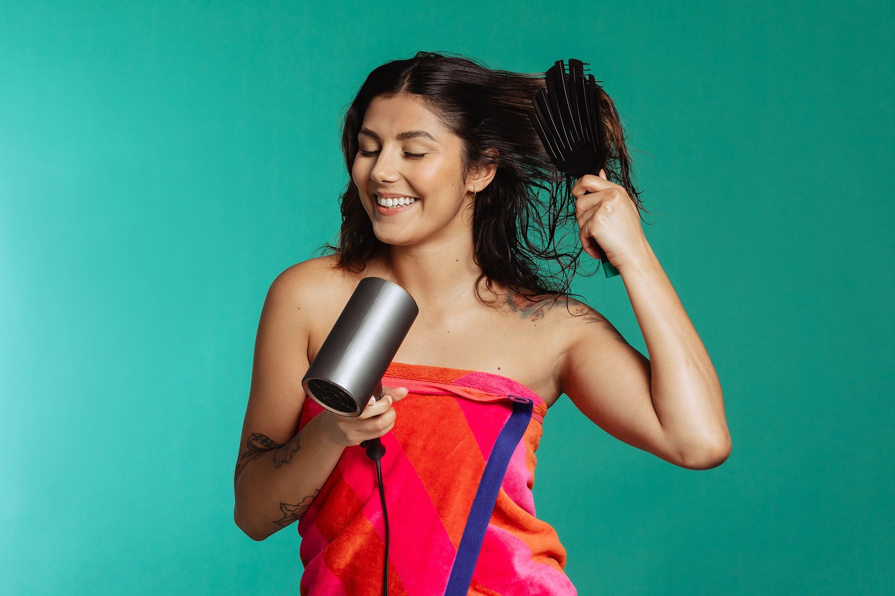 Can I hold my hair dryer directly on the pins / bristles?